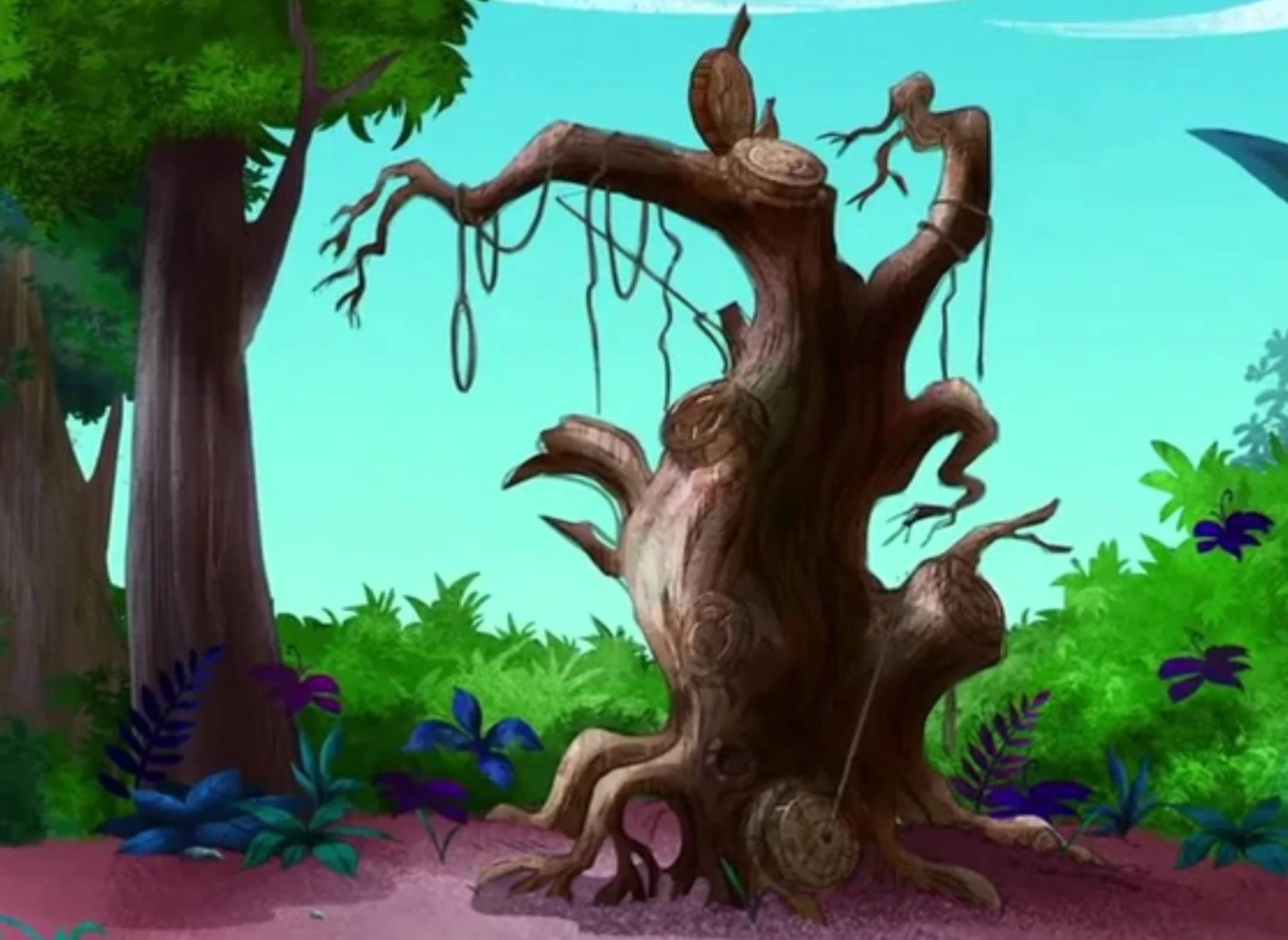 Hangman's Tree is a large, but dead tree located deep within Never Land featured in the Disney Junior animated series, Jake and the Never Land Pirates. It serves as the entrance to the home of Peter Pan and Tinker Bell, before they set off to explore the wonders beyond the Never Sea. The tree has multiple trap doors and secret entrances for Peter Pan and his friends to enter and exit through. Hangman's Tree also served as the temporary home of the Darling siblings during their first adventure on the island.
