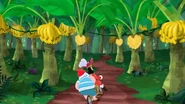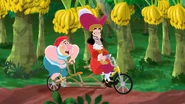 Have-a-Banana Grove first appeared in the episode "Free Wheeling Fun", where Captain Hook and Mr. Smee made their escape through the banana grove with Jake and his crew's bicycle built for three, knocking down large piles of bananas to slow the sea pups down. But the young pirates were too clever to be outwitted by that old codfish's trick, and use the jungle vines to slip past the bananas and continue chasing after Hook and Smee.
