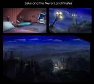 London is a heavily populated city and the capital of England featured in the Disney Junior animated series, Jake and the Never Land Pirates. The Darling family lives in London, in the Bloomsbury section, in the era of 1900 to 1904 assumedly. Peter Pan often flew from Never Land to London to hear Wendy's stories.