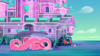 Pirate Princess Island first appeared in the episode "The Rainbow Wand", where the Pirate Princess loses her magical wand, which, oblivious to her, was recently found by Izzy back at Pirate Island. Jake and his crew journey off to the Pirate Princess' castle to return the wand, but are followed by Captain Hook and his crew. After reaching the castle, they use the princess' pet sea serpent, Cecilia, to get rid of the captain. The Pirate Princess uses the magic of her wand to create a rainbow, which leads Jake and his crew home.
