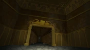 The Pirate Pyramid first appeared in the episode "The Great Pirate Pyramid" while Captain Flynn was making repairs to his ship the Barracuda he discover a map leading to the Pirate Pyramid aboard his ship. With the help of Jake and his crew journey through Never Land Desert for the Pyramid unknown to Flynn that Captain Hook also wants to claim Pyramid for himself. The crew soon found a lever hidden in the sand that reviled the Pyramid from the desert. Captain Flynn warn his young pirate friends to be wary while exploring the Pyramid because the Desert pirates may have left pirate booby-traps. The crew in counter a trick door and had to knock three times otherwise they would fall through a trap door in the floor. They soon discover who ever lived had abandoned the pyramid. Captain Hook and Mr. Smee manage to get past the traps and claims the pyramid as his own but is later tricked by Jake into setting one of the booby-traps, sending Hook and Smee falling through a trap door in the floor. With Hook defeated, Captain Flynn noticed that the Pyramid had everything that he needed so he decided to live there.